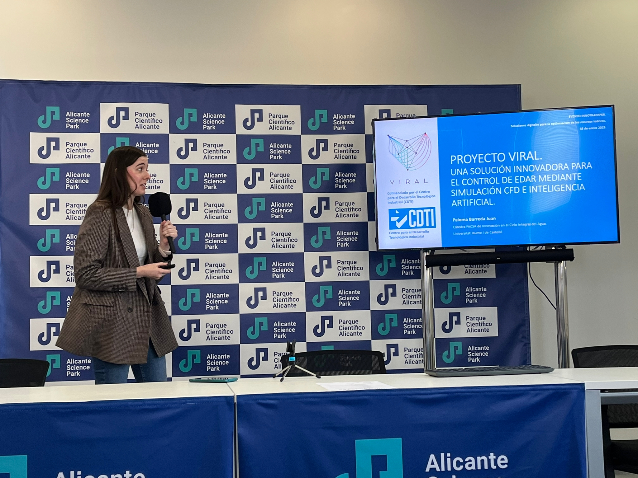El martes pasado, nuestra agente de innovación, Paloma Barreda, presentó el «Proyecto VIRAL. Una solución innovadora para el control de EDAR mediante simulación CFD e Inteligencia Artificial» como caso de éxito en el evento INNOTRANSFER dedicado a «Soluciones digitales para la optimización de los recursos hídricos».